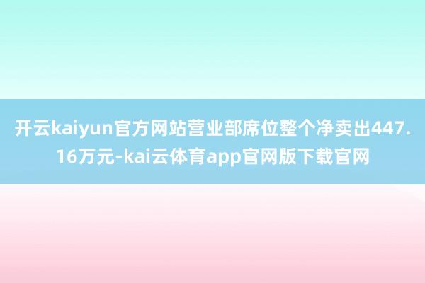 开云kaiyun官方网站营业部席位整个净卖出447.16万元-kai云体育app官网版下载官网