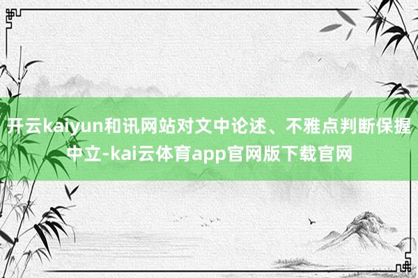 开云kaiyun和讯网站对文中论述、不雅点判断保握中立-kai云体育app官网版下载官网