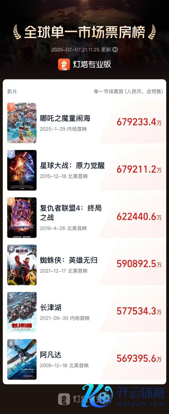 新浪科技讯 2月7日晚间音问,据灯塔专科版,影片《哪吒之魔童闹海》内地单一阛阓票房(含预售)已冲破67.92亿东说念主民币,逾越《星球大战:原力觉悟》北好意思单一阛阓票房,成为各人影史单一阛阓票房冠军。 海量资讯、精确解读,尽在新浪财经APP 包袱裁剪:王若云 开云kaiyun